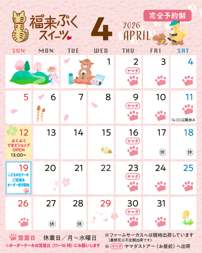 ぷくぷくでは、ご予約販売として4/19(日)よりご案内・オーダー受付開始とさせていただきます。