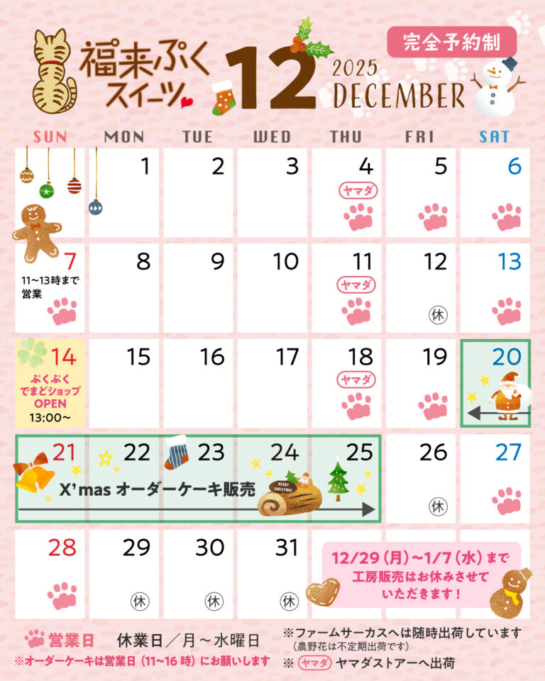 12月のお知らせ(クリスマスケーキ&年末年始のご案内)